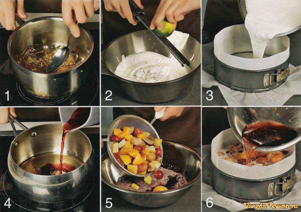 6. Аккуратно выложить смесь в форму, на йогуртовое желе. Вернуть в холодильник еще минимум на 1 ч. |
