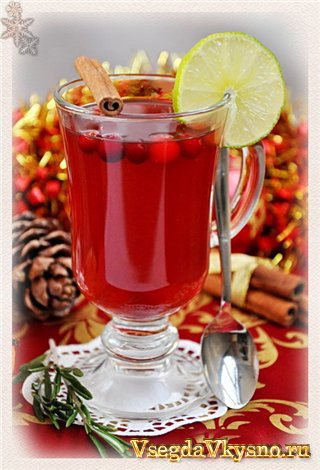 • 3 стакана клюквенного морса • 1 стакан апельсинового фреша • 2 столовые ложки коричневого сахара или меда • 1 чайная ложка гвоздики • 1⁄4 палочки корицы • Сок одного лимона • Мускатный орех для присыпки |