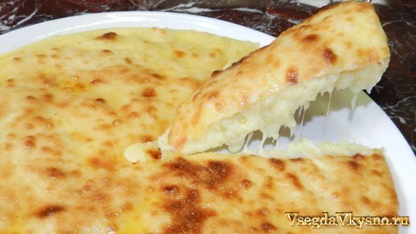 Готовое тесто разделить на части и каждую часть раскатать на лепешки толщиной в 0,5—1 см. На середину лепешки положить заранее приготовленный фарш из свежего осетинского сыра, разровнять сыр на поверхности лепешки на 3—4 см от края лепешки, затем, забирая концы лепешки, постепенно стянуть их на середину и соединить. Нажимом ладони разровнять поверхность пирога.
