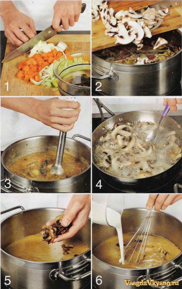 Способ приготовления: 1. Сухие грибы залить стаканом кипятка и оставить на 30 мин. Лук и морковь очистить, сельдерей и лук-порей промыть. Лук и морковь нарезать кубиками, сельдерей и лук-порей мелко нашинковать. В кастрюле растопить 50 г сливочного масла и обжарить репчатый лук, 4 мин. Добавить морковь, сельдерей, порей, тимьян и шафран, готовить, помешивая, еще 6 мин. Влить настой с белыми грибами и 2 л воды. Посолить по вкусу, довести до кипения и варить на маленьком огне 40 мин. За 10 мин. до готовности положить лавровые листья.