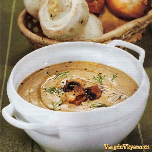 6. Влить сливки, херес и лимонный сок, снять с огня. Укроп промыть и измельчить. Разлить суп по тарелкам, посыпать укропом.