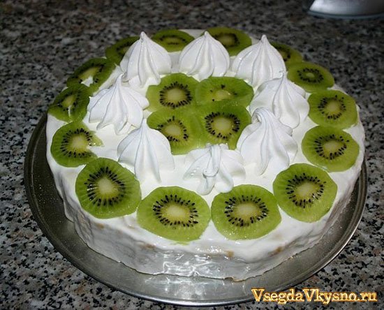 • 200 гр. творога • 150 гр. сметаны • 0,5 стакана сахара • 1 столовая ложка сливочного масла • 1 столовая ложка желатина • 2 киви • 3 столовых ложки изюма • 3 столовых ложки кураги • 50 гр. грецких орехов • 100 гр. печенья |