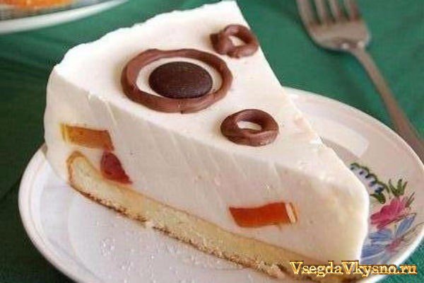 • Сметана — 0, 5 кг • Желатин — 20 г • Сахар — 150 г • Песочное печенье — 120 г • Фрукты (киви, персики, груши, черешни) |
