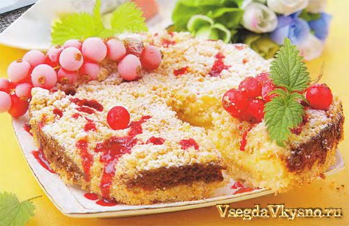 Готовый пирог пропитать соком красной смородины или украсить целыми ягодами.