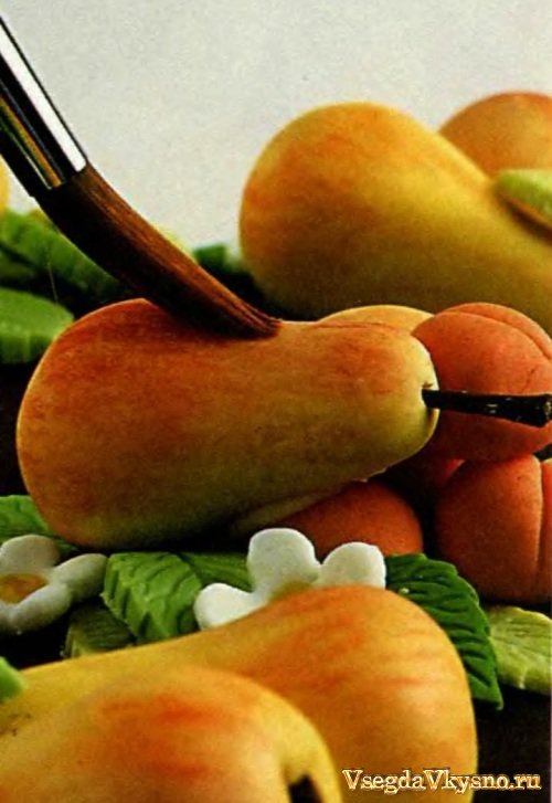 Марципан широко используется для декорирования кондитерских изделий и изготовления различного вида украшений. Достаточно привести в качестве примера знаменитые фрукты из марципана «Марторана», популярные на Сицилии. Марципановую массу используют также для создания идеально ровной поверхности коржа, перед тем как покрыть его пластичной глазурью. |