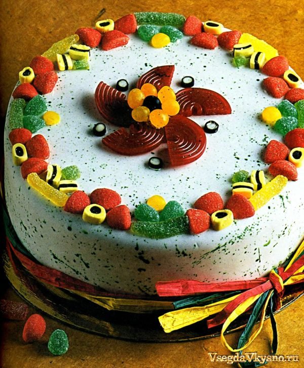 Даже если у вас мало времени, приготовьте для своих домашних этот симпатичный торт. Ниже приводится быстрый и легкий способ украшения торта. К этой работе можно привлечь детей, им это очень понравится. |