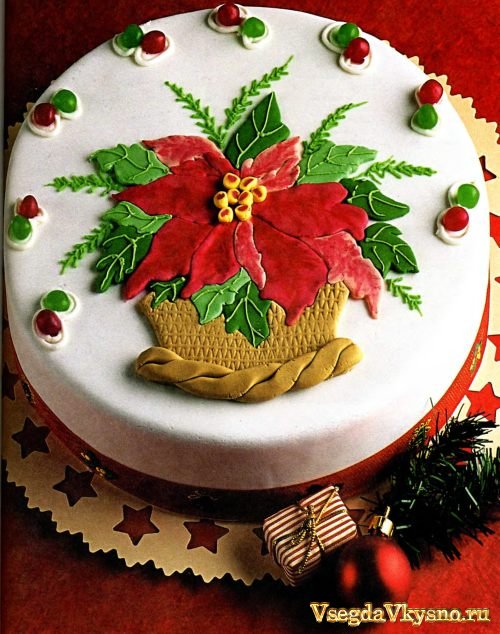 Несмотря на то, что Рождеству посвящено очень много классических тортов, интересно приготовить к этому празднику свой оригинальный, украшенный глазурью торт. Ниже приводится несколько вариантов украшения на эту тему. Торг «Рождественская звезда» - самый простой в исполнении. |