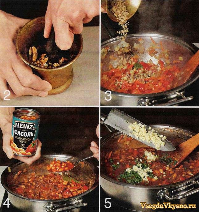 Ингредиенты:2 банки (по 415 г) консервированной фасоли в томатном соусе Heinz