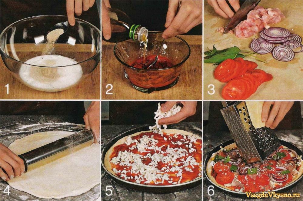 4. Тесто обмять, переложить на присыпанную мукой рабочую поверхность. Еще раз вымесить и раскатать в лепешку диаметром значительно больше диаметра формы для выпечки. Быстро переложить лепешку на форму. Когда через несколько секунд тесто начнет сжиматься, закрепить его края по размеру формы, прижав их руками.